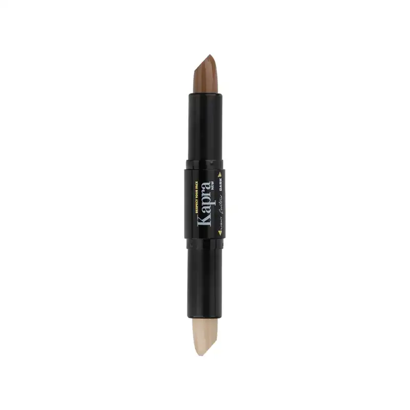 کانتور : کانتور به عنوان یک ابزار آرایشی برای تغییر چهره به کار میرود. با استفاده از طرف دارای رنگ تیرهتر از پوست، میتوانید سایهها را در نقاط مختلف چهره ایجاد کنید. به عنوان مثال، میتوانید خطوط کمرنگتری در زیر گونهها، در طرفهای بینی و در خطوط فک پایینی ایجاد کنید تا چهره کوچکتر شود و ویژگیهای زیبای آن برجسته شود. رنگ قسمت کانتور این استیک قهوه ای با تناژ نارنجی است.