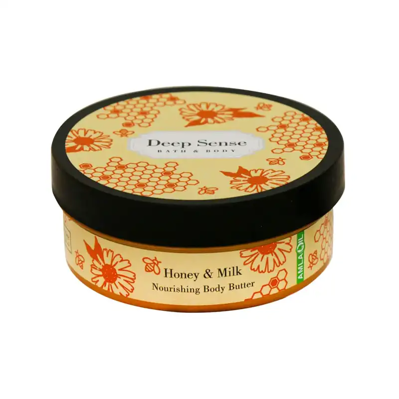 از دیگر ترکیبات قابلتوجه در کره بدن شیر و عسل دیپ سنس میتوان به عصاره عسل، کره کاکائو و روغن آملا اشاره کرد. عصاره عسل خاصیت التیامبخش و ضد التهابی داشته و در تسکین خارش و تحریکات پوستی موثر عمل می کند. کره کاکائو نیز با داشتن اسیدهای چرب ضروری، پوست را عمیقاً تغذیه کرده و به حفظ نرمی و لطافت آن کمک میکند.
