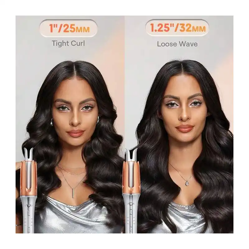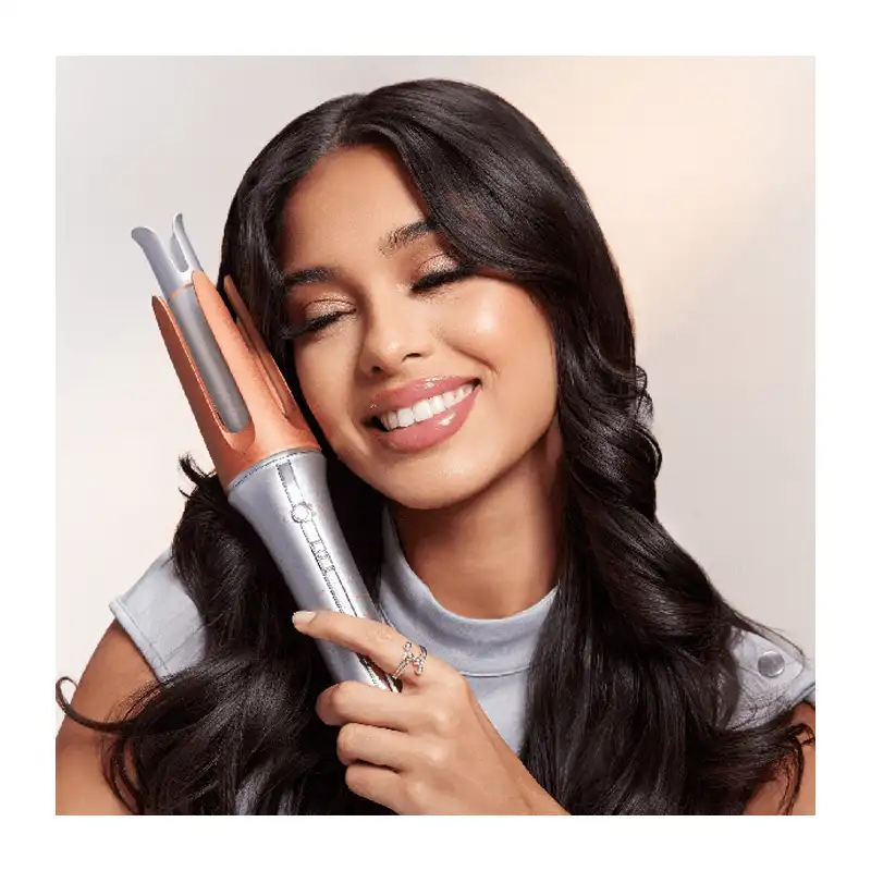 برای جلوه بهتر، موهایتان را با یک سرم دو فاز کمی مرطوب کنید. سپس دستگاه را عمود نگه داشته و دستهای از موها را بین قسمت U بالای فر کننده قرار دهید و دکمه چرخش (زیر دکمه انتخاب جهت) را نگه دارید تا موها پیچیده شوند.